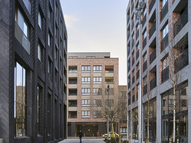 Monier Road, part of the Fish Island master plan for Peabody, led by Haworth Tompkins and featuring Lanterna by Lyndon Goode.