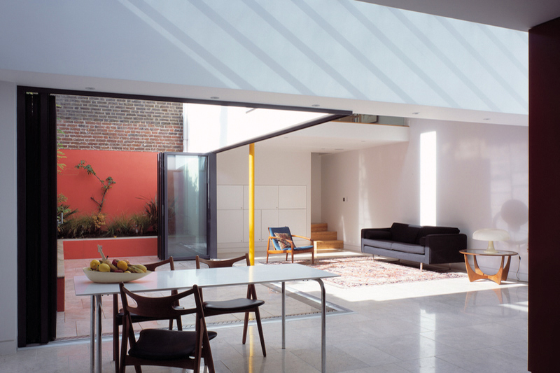 The traditional terraced house is inverted to create daylight-flooded living space on the upper floors, with bedrooms below.
